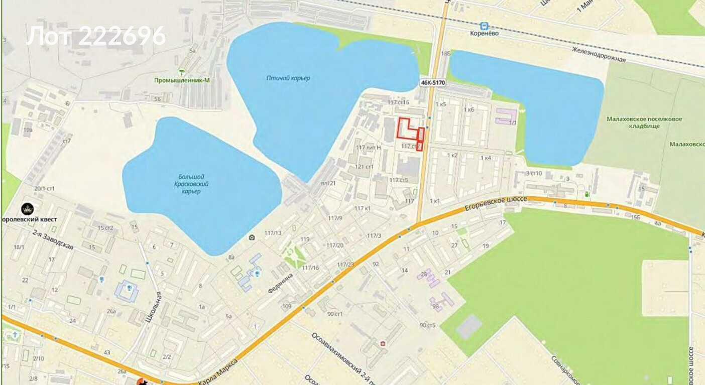 Лот № 222696 Продаётся комплекс административных зданий общей площадью 2 794,8 кв. м. Расположение: пос. Красково, центральная часть, первая линия (напротив ЖК «Новокрасково»). Отличная транспортная доступность: * Ж/д станция Коренёво в 300 м (10-15 мин до м. Выхино, Лермонтовский проспект, Косино). * Остановки общественного транспорта** в 10-50 м. * Рядом пересечение Егорьевского и Коренёвского шоссе. 1. Здание №1 (6 этажей): 1 627 кв. м. Назначение: административное. Свободная планировка, высота потолков 3 м. Земельный участок в аренде на 49 лет. 2. Здание №2 (2 этажа):** 1 042,2 кв. м. * Назначение: административно-производственное. * Земельный участок в стадии согласования. 3. Здание №3 (1 этаж): 125,6 кв. м. * Назначение: торговое. * Планировка на 3 отдельных помещения с входами. * Земельный участок в аренде на 49 лет.